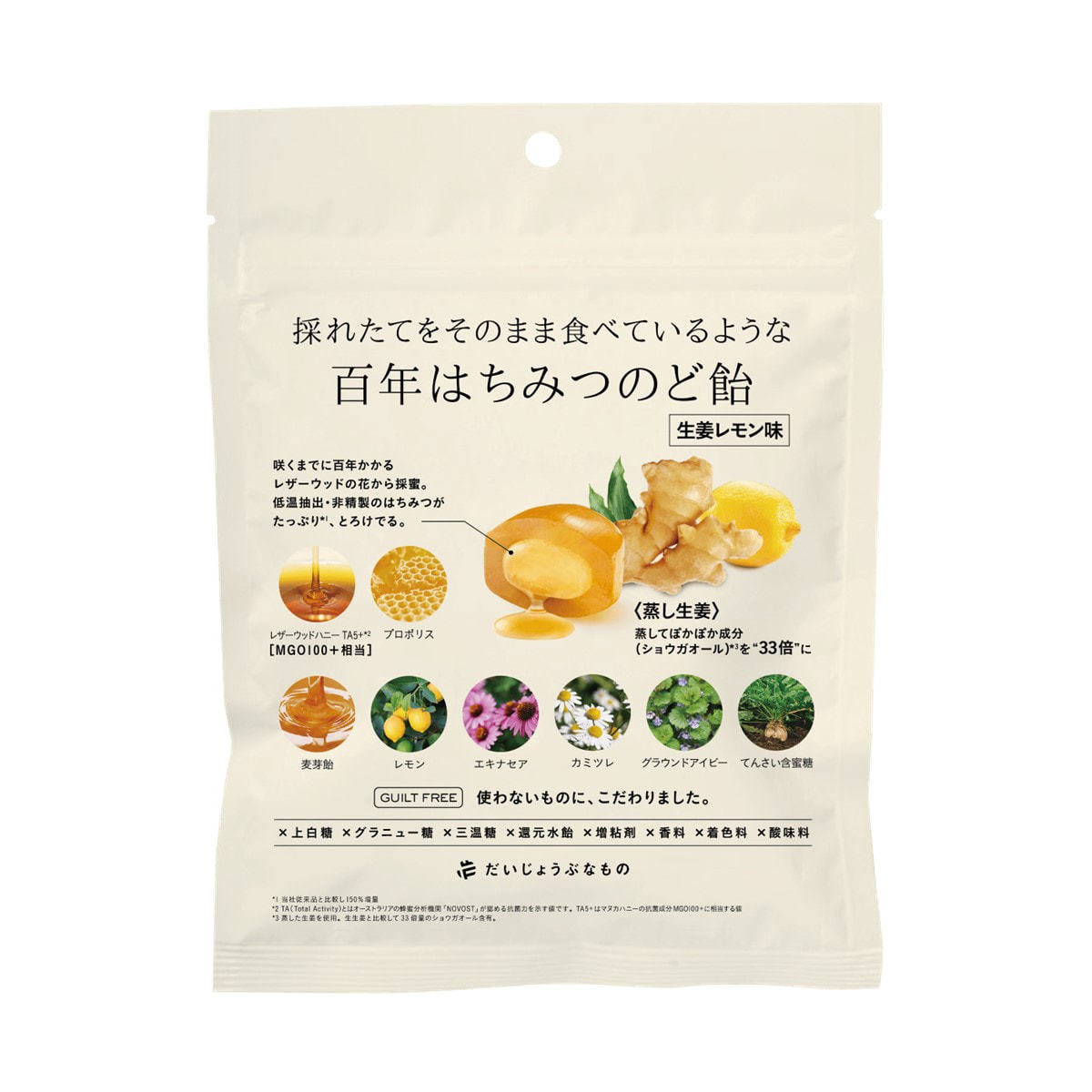 だいじょうぶなもの レザーウッドハニー+ハーブキャンディ(しょうが×レモン)51g