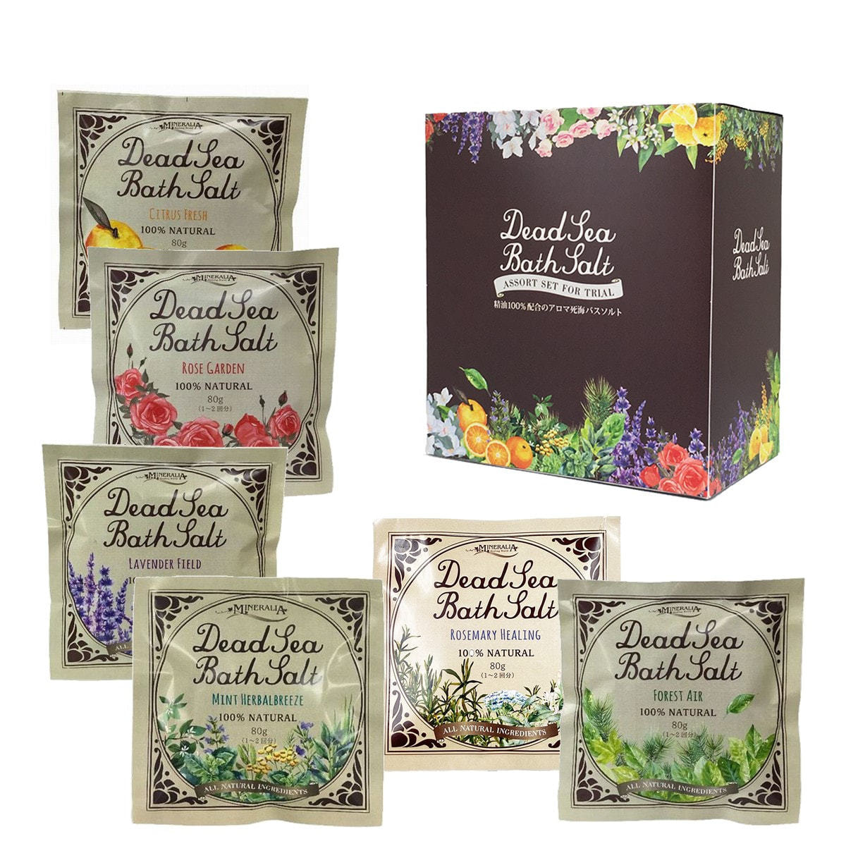 商品名:ミネラリア デッドシーバスソルト 80g 天然アロマアソートセット(6個入り)