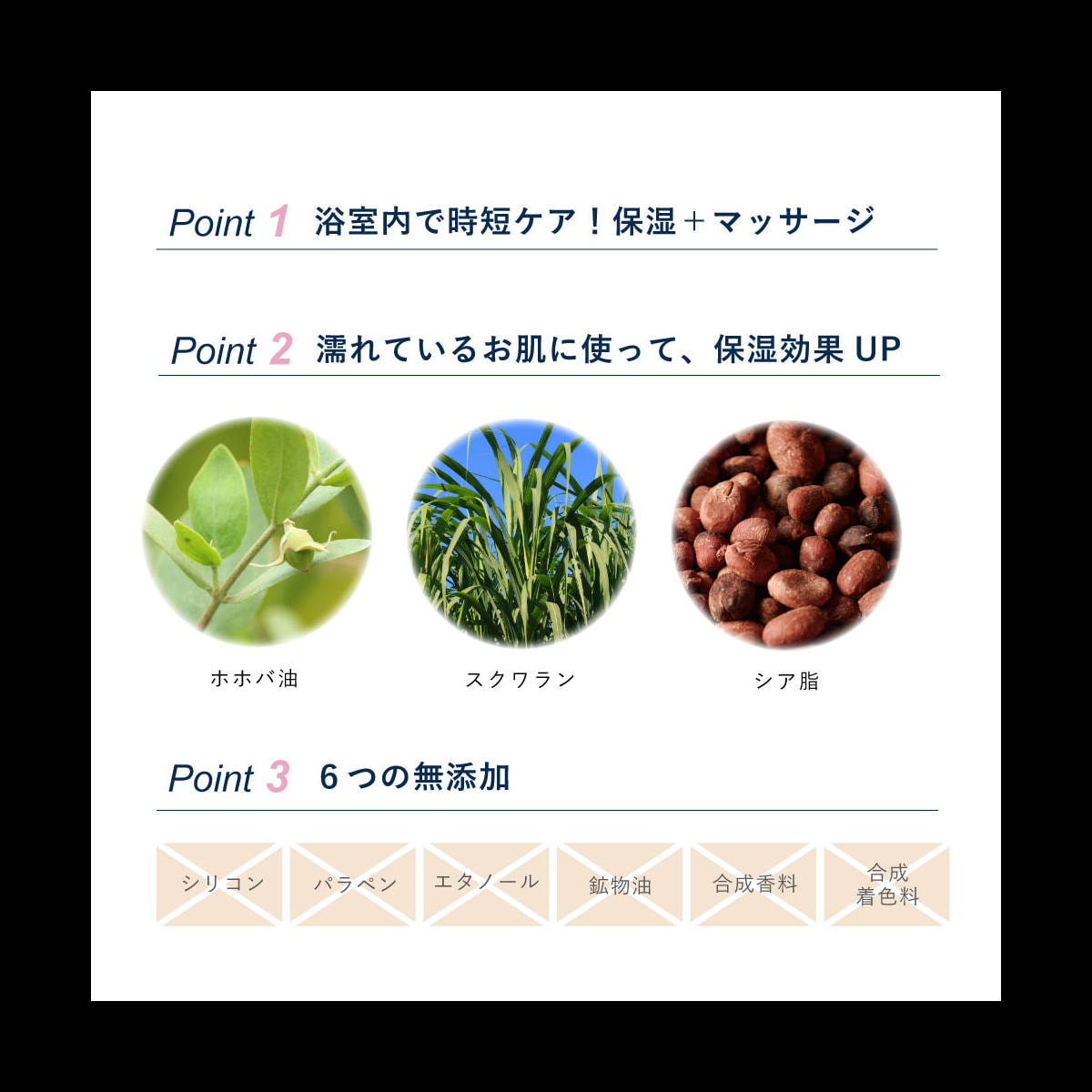 浴室で塗るためお肌のすべりも良く、体温が高い状態なので血行促進にもなります。