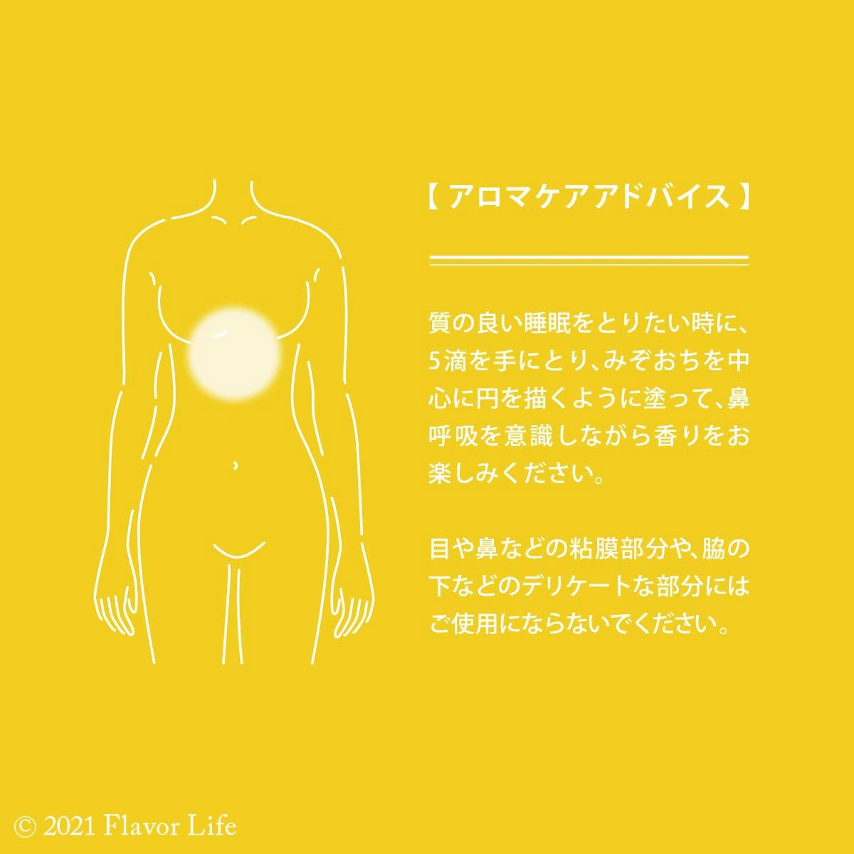 2~3滴を肌に直接塗って、鼻呼吸を意識しながら香りをお楽しみください。